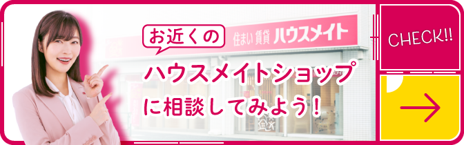 - ハウスメイトグループ直営仲介店舗(ネットワーク加盟店除く)にてお部屋をお申込のうえ、ご成約された場合に限ります。